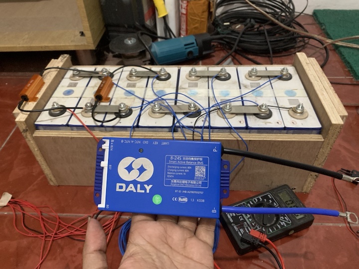 Saat ini Saya memiliki kesempatan untuk mencoba ganti BMS dari Daly 8s 60A merah ke Daly 100Balance BMS 60A active balance 1 A yang warna biru itu. Sebenarnya pakai yang lama “nampak” tidak ada masalah, saya juga sudah membeli active balancer 8s 5A. Belum sempat saya pasang aktive balancernya, tapi saya malah dapet upgrade ka Daly smart BMS. Walaupun nilai active balance nya lebih kecil yaitu 1 A, tapi kita bisa pantau tiap cell-nya.